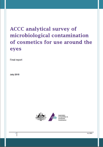 Date published 1 Jul 2015 Download publication (267.82 KB - DOCX)267.82 KB Download publication (851.42 KB - PDF)851.42 KB Listen to publication This report describes the findings of an ACCC survey of microbiological contamination of cosmetics for use around the eyes. Topics Cosmetic products