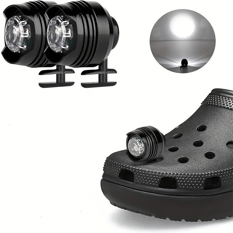 2 pack of Crocs shoe headlights in 5 colours: black, white, green, blue and red.