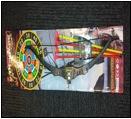 Black-coloured toy bow with 4 red and yellow suction-tipped toy darts