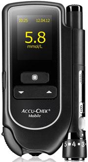 The Accu-Chek Mobile blood glucose meter is used by people receiving insulin therapy to monitor their blood glucose levels.