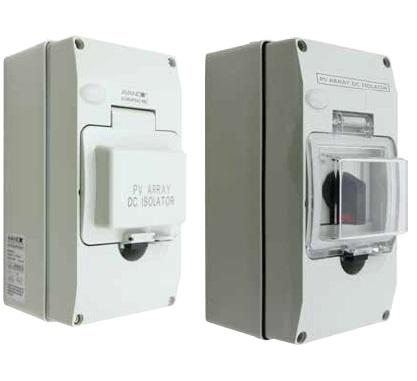 The products are DC solar power isolator switches forming part of the Blueline solar power system.