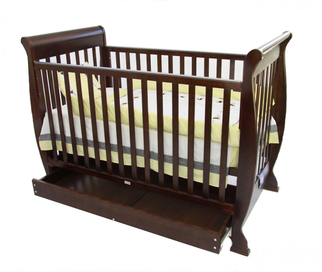 A sleigh-style cot that converts to a toddler bed and a daybed.