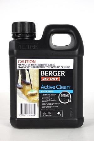 Berger Jet Dry – Active Clean is a concentrated cleaning formula for the removal of oil and grease stains from hard surfaces such as garage floors and driveways.