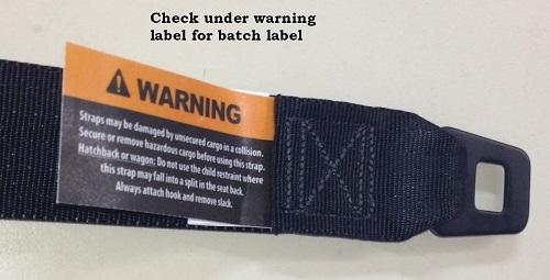 The Tether Extension strap should be replaced as soon as possible. Consumers should check the batch number on the strap (number is on a white label underneath the label marked WARNING) and if affected, contact Hemco on 1300 065 057 to arrange a replacement Tether Extension strap.
