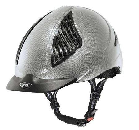 Lacquered Uvision Elegance: equestrian helmet with visor, lockable ventilation lamellas and a flocked surface.