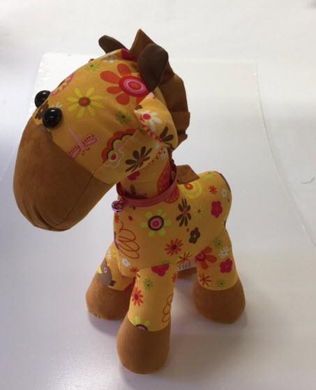 Fabric giraffe in bright colour and prints in sizes medium and large.