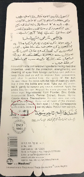 Powdered eyeliner/kohl in a small bottle with cardboard backing.