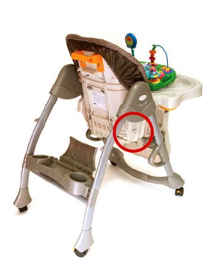 The screw and pivot cap hardware on the sides of the high chair can release.