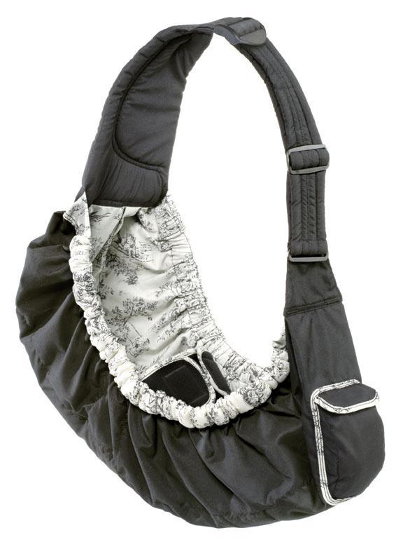 The sling rider is a soft fabric baby carrier with a padded shoulder strap that is worn by parents and caregivers to carry an infant.