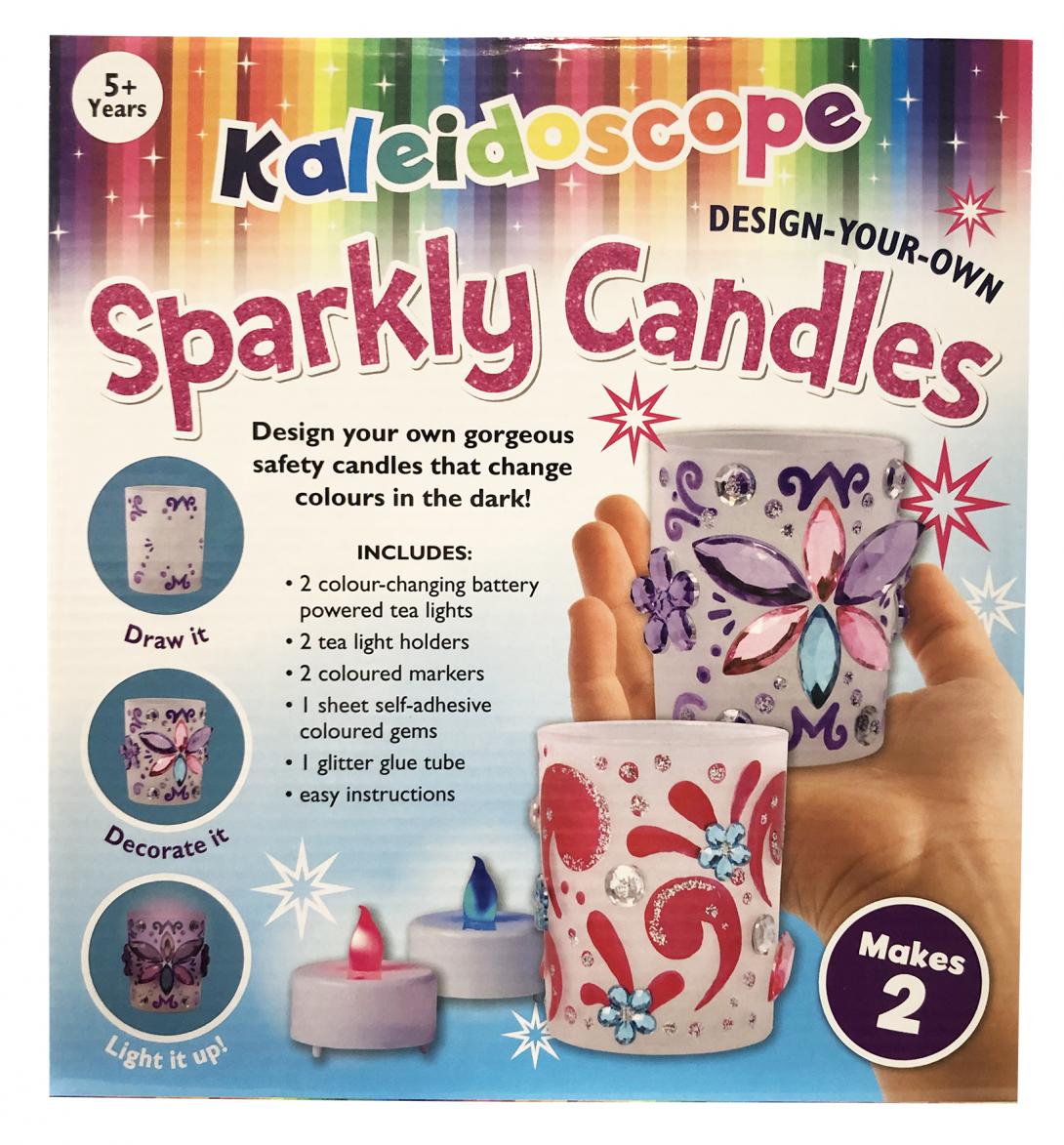 Craft kit containing tealight candle holders and elements for decorating the candle holder.