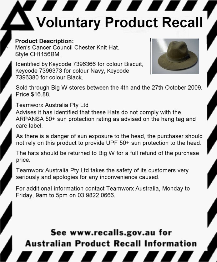 The hat does not comply with ARPANSA 50+ sun protection rating as advised on the hang tag and care label.