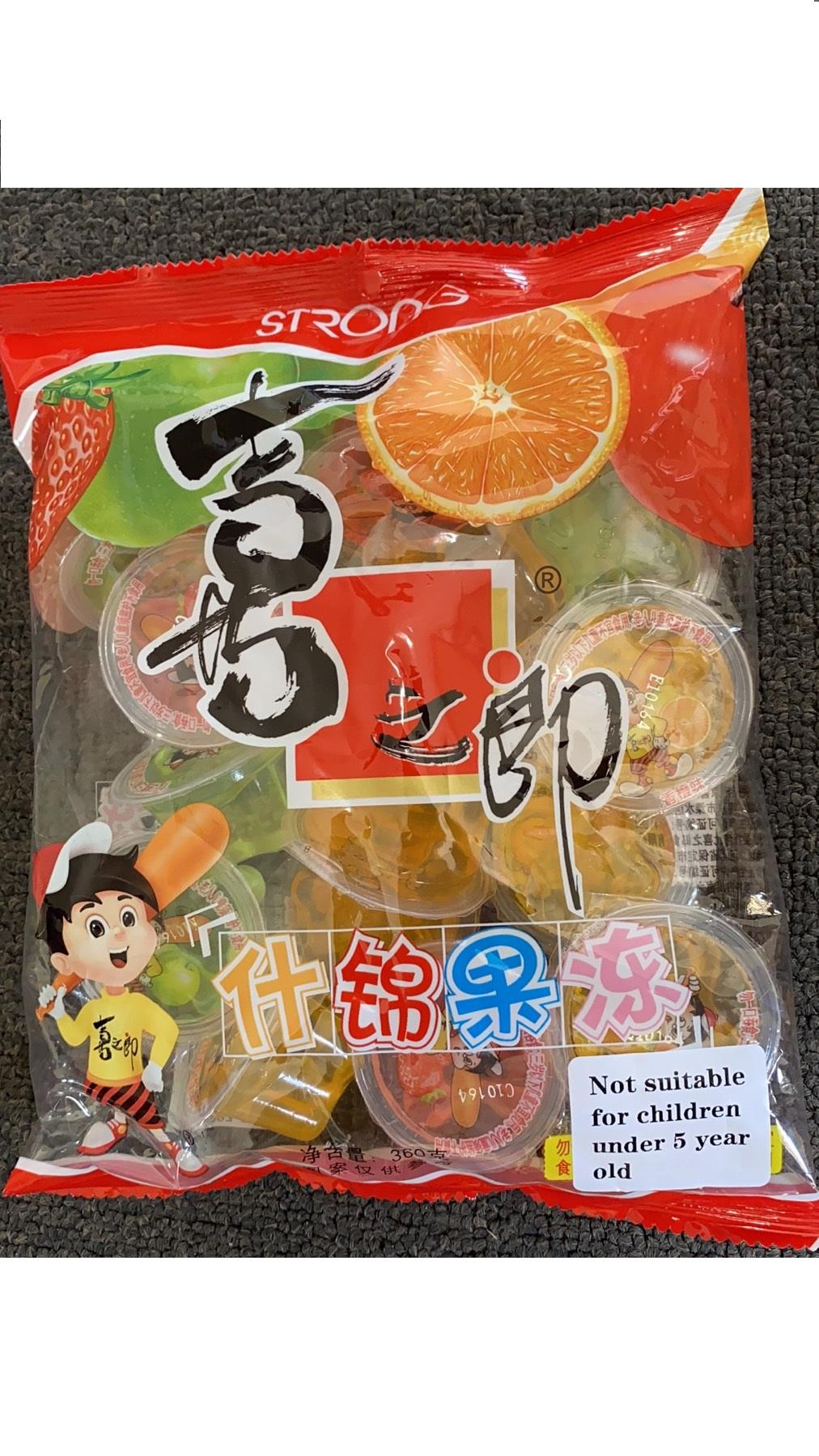 Mini jelly cups contain konjac. As konjac does not dissolve easily when eaten, if a jelly lodges in a person's throat, it can act as a plug that cuts off air supply.