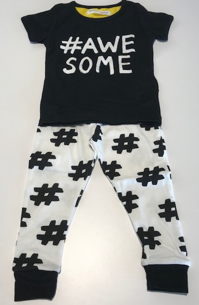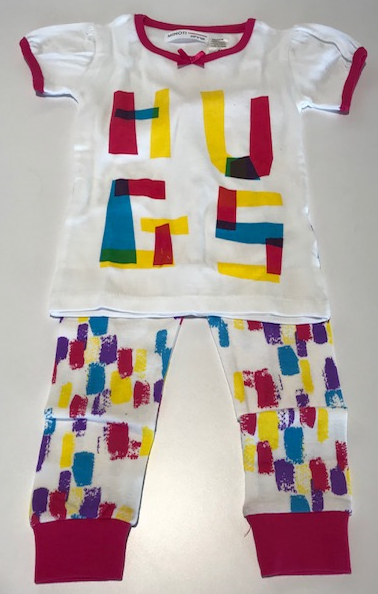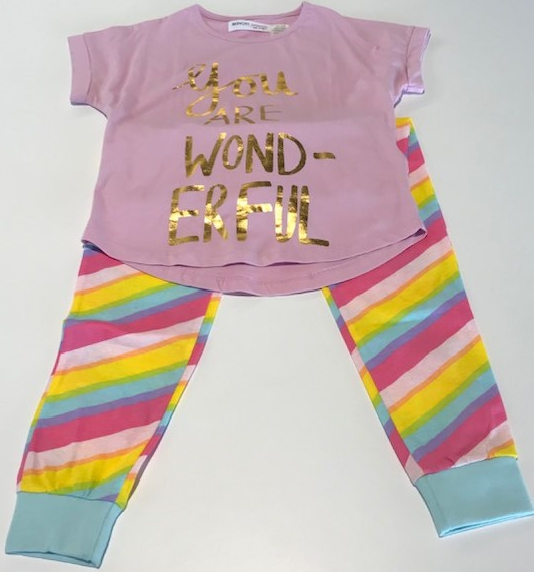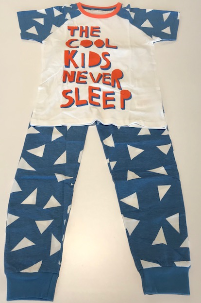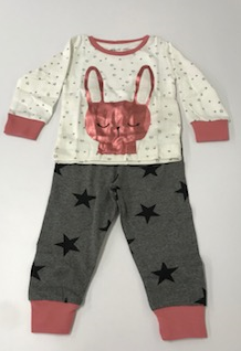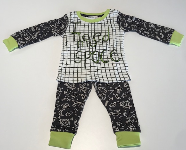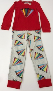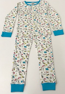 Top and pant pyjama sets designed for children incorporating colourful images.