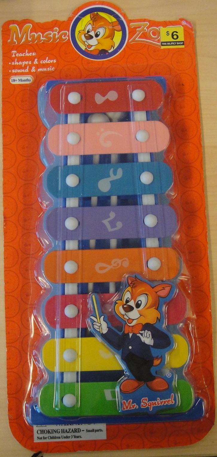 The xylophone is non-compliant with the mandatory standard for toys for children up to and including 36 months of age. The key studs (rubber pieces that are attached to the metal keys) may become detached.