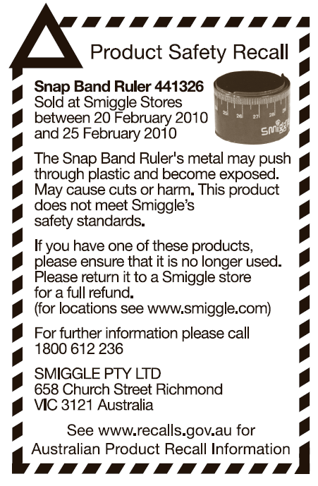 Return stock to Smiggle stores or send to Head Office at 658 Church Street,Richmond Victoria 3121.