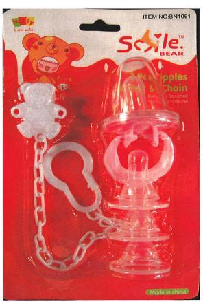 Smile Bear 3 Piece Nipples Soother & Chain
