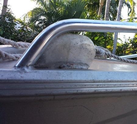 In some circumstances it may be possible for a person's finger to be caught between the edge of the navigation light mounting plate and the bow rail tube.