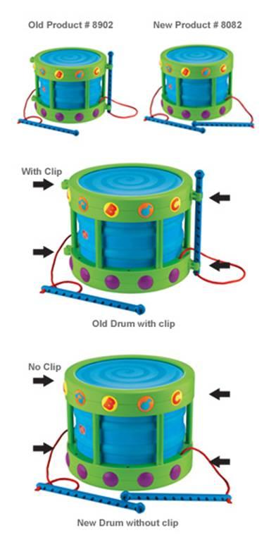 Although there have been no incidents of injuries caused by the Drum, if the clip were to break a child could put the broken piece in their mouth posing a choking hazard.