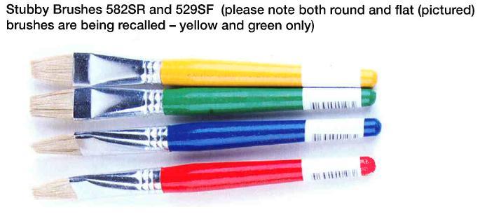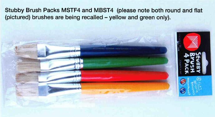 If you have purchased the above brushes sold during this period, you are requested to immediately take the product away from children, stop using them and return them to the place of purchase. Micador Group will subsequently send you replacement stock that has been tested and passes Australian safety standards. For further information contact the Micador Group Customer Service Manager, Trevor McGary, on 1800 628 878 or 03 9590 0122 weekdays between 9am and 5pm EST.
