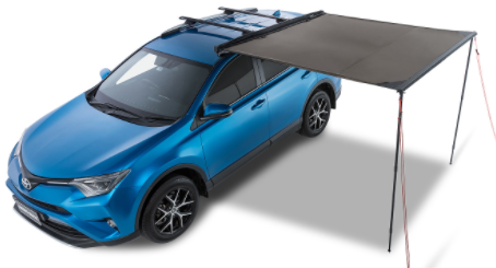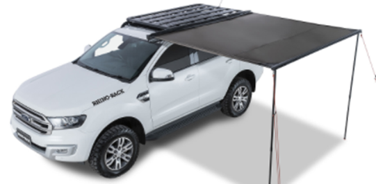 Awnings designed to be mounted on the roof rack of motor vehicles.