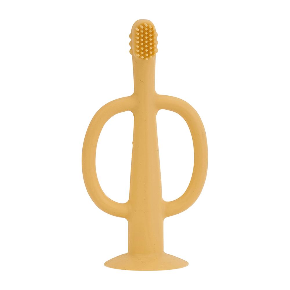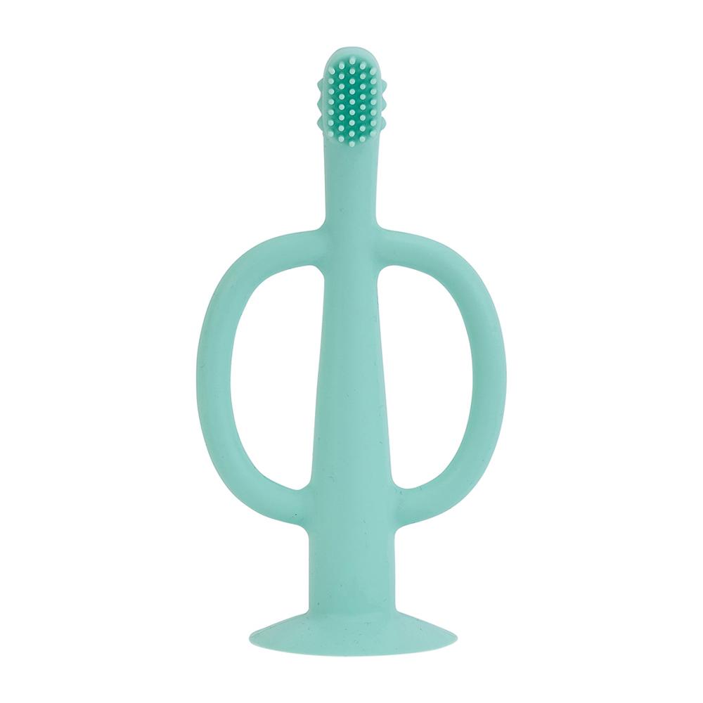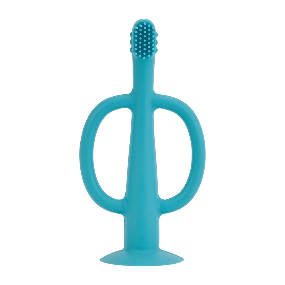 • Toothy Teether is shaped like a toothbrush with handles