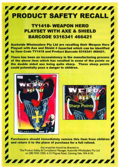 Consumers should remove this product from children and return the product to the retailer where it was purchased for a full refund.