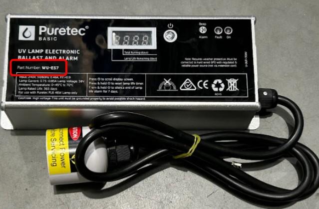 If the part number is WU-ES7, consumers should contact Puretec on sales@puretecgroup.com or by phone on 1300 140 140 to arrange a replacement ballast for the UV system.